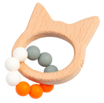 | Has your child reached the stage of teething problems with the need to chew and teeth starting to come through? If so, then what better to be able to chew and bite on something hard, such as this cute teether by Dikkie Dik. It is made from FSC wood and silicone beads. |